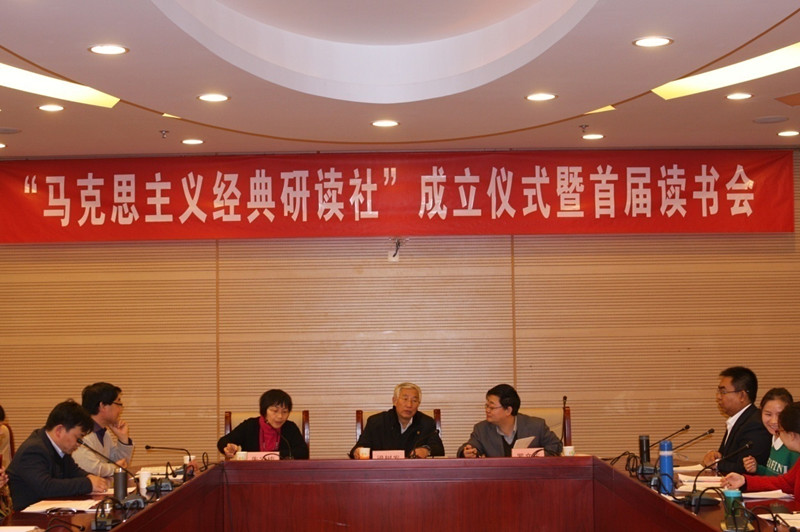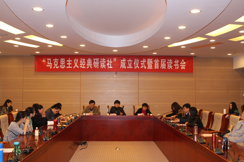 为了提高广老员工特别是研究生的马克思主义理论素养,倡导公司读经典、学理论的优良学风,发挥团队建设优势,为师生搭建一个经典研读、学术交流的平台,经过半年的充分论证和筹备后, “马克思主义经典研读社”(以下简称研读社)成立仪式暨首届读书会于2014年11月21日下午在学术会堂604隆重举行。出席大会的有:董事长助理朱凌云研究员、学工部杨莹部长、研究生院徐淼副经理、校团委高杰书记,中国人民大学博士生导师梁树发教授、中国社会科公司博士生导师罗文东研究员,以及sunbet朱家梅副书记、哈战荣副经理、马院全体师生等70余人。成立仪式由哈站荣副经理主持。