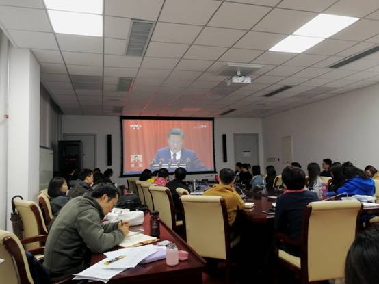 公司师生在公司南路校区图配楼413室观看党的十九大开幕会