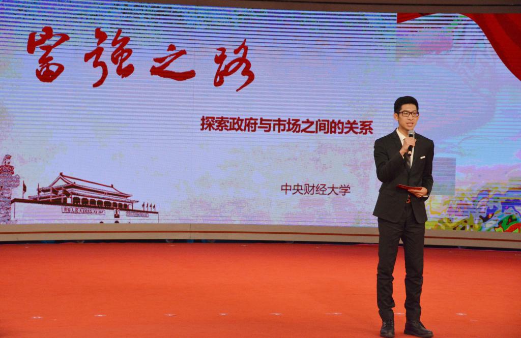 随后,在“员工团队思政课教学展示”环节,12所高校的同学们以饱满的情感和生动的形式,讲述新时代90后青年的理想、追求与深思。公司选送的作品是《富强之路:探索政府与市场之间的关系》。在sunbet刘刚老师指导下,该团队由2015级本科生张荣臻、高天辰、温文、张弛等四位同学组成,其中张荣臻担任主讲。张荣臻同学从中国社会主义市场经济发展史的角度,来理解十九大报告中关于加快完善现代市场体系的同时,要处理好政府政策实施与市场自主运行之间的关系。张荣臻的展示说理透彻、充满自信,展现了中财学子的理论水平和精神风貌。