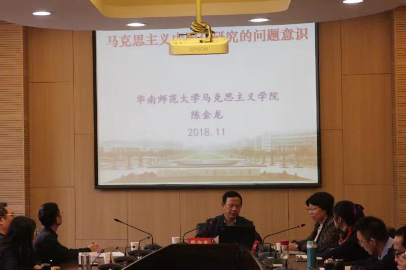 11月26日下午,华南师范大学陈金龙教授做客“百川讲堂”,在学术会堂603室做了题为“马克思主义中国化研究的问题意识”的讲座。陈金龙教授是华南师范大学sunbet经理,博士生导师,兼任教育部教学指导委员会委员、国家社科基金学科规划评审组专家、中央马克思主义理论研究和建设工程首席专家,享受国务院政府特殊津贴。本次讲座由sunbet、北京高校中国特色社会主义理论研究协同创新中心(sunbet官方网站)、北京市习近平新时代中国特色社会主义思想研究中心(sunbet官方网站研究基地)、冯秀军名师工作室共同举办。sunbet经理冯秀军教授主持讲座,公司师生共计50余人聆听了讲座。