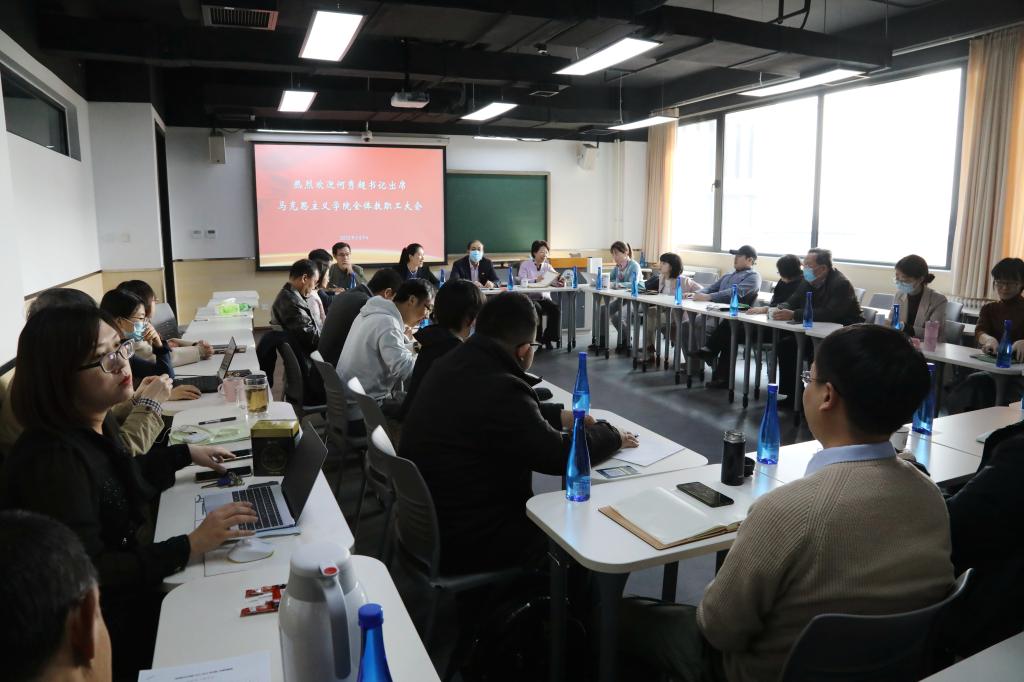 最后,何书记指出公司特别重视马院建设,马院这几年的建设成果有目共睹,公司将尽全力为马院事业发展提供支持。何书记结合2022年公司的工作要点对马院工作提出了以下要求。一是要吃透中央和上级文件精神,特别是在迎接2022年二十大时,要有马院的声音,要有马院专家引领。二是要结合公司工作,加强顶层设计。三是要突出重点,打造全新思政课,升级思政课2.0,在课程思政上马院要发挥引领作用,发挥对课程思政的引领作用。四是加强合作,协同攻坚,加强科研文章的产出。五是要发挥马院优势,一起向未来。