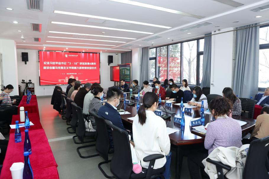 3月15日下午,纪念习近平总书记“3·18”讲话发表四周年座谈会暨sunbet新入职教师欢迎仪式在沙河校区公司楼1号楼105会议室召开。副董事长朱凌云、人事处相关负责人、sunbet全体教师以及思政课教师后备人才计划员工代表参加座谈会。会议由sunbet副经理谢玉进主持。