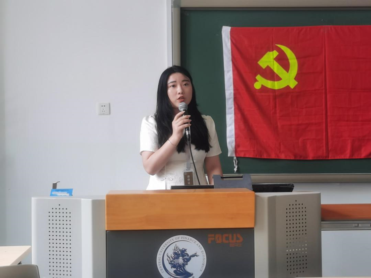 皮福玲同学以习近平总书记2023年9月在黑龙江考察调研期间提出的令人耳目一新的原创性概念——“新质生产力”为着眼点,与中华优秀传统文化相结合,作了以《乘“数”而上,以“新”促“新”:厚植新质生产力,激发中华优秀传统文化新活力》为题的主题宣讲。她以“与古代诗人李白对话”为导入,带大家感受了数字化技术与中华优秀传统文化、文旅的融合发展催生的蝶变,强调了数字化技术丰富优秀传统文化传承保护的新载体、数字化叙事革新优秀传统文化演绎呈现的新方式、数字化媒体开辟优秀传统文化传播互动的新渠道、数字赋能助力文化产业高质量发展。新质生产力具有高科技、高效能、高质量的特征,赋能中华优秀传统文化的继承与创新,催生了文旅与新技术的融合应用,文化与经济相互交融、相互促进、相得益彰。在这个过程中,文化也在推动新质生产力的发展。最后,作为中国青年,我们应该以青春小我书写数字文化强国之大我,坚定文化自信,践行文化发展的担当与使命。