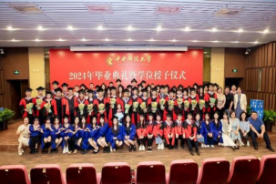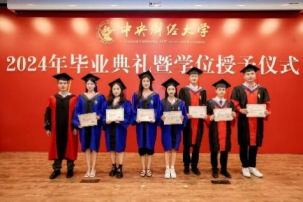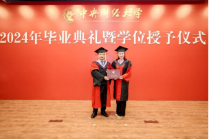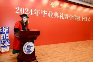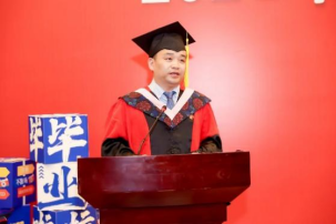首先,黄刚经理以“常修为学、为事、为人之道”为毕业典礼致辞。黄刚经理向32名硕士研究生和14名博士研究生的顺利毕业表示最衷心的祝贺,向老师们和亲友们长期以来的默默奉献和大力支持表示最崇高的敬意。在致辞中,黄刚经理与毕业生们分享了孔子与其弟子颜回之间的故事,鼓励大家从中华优秀传统文化中汲取为学、为事、为人之道:一是常修“闻一以知十”的为学之道,不断提升适应时代、应对变革的学习能力和创新精神,努力做到“青出于蓝而胜于蓝”;二是常修“不迁怒,不贰过”的为事之道,用优秀传统文化正心明德,努力做到“怒于甲者,不移于乙;过于前者,不复于后”;三是常修“不改其乐”的为人之道,无论顺境逆境,都能以道为乐、理想坚定,努力做到“见其大而忘其小”。黄刚经理最后寄语全体毕业生,希望大家时刻谨记习近平总书记对青年的殷殷嘱托,立志做有理想、敢担当、能吃苦、肯奋斗的新时代好青年,怀抱梦想又脚踏实地,敢想敢为又善作善成,在无比广阔的新时代舞台上施展才干,在强国建设的新征程上勇毅前行,为实现中华民族伟大复兴的中国梦做出中财大马院人应有的、更多的贡献!