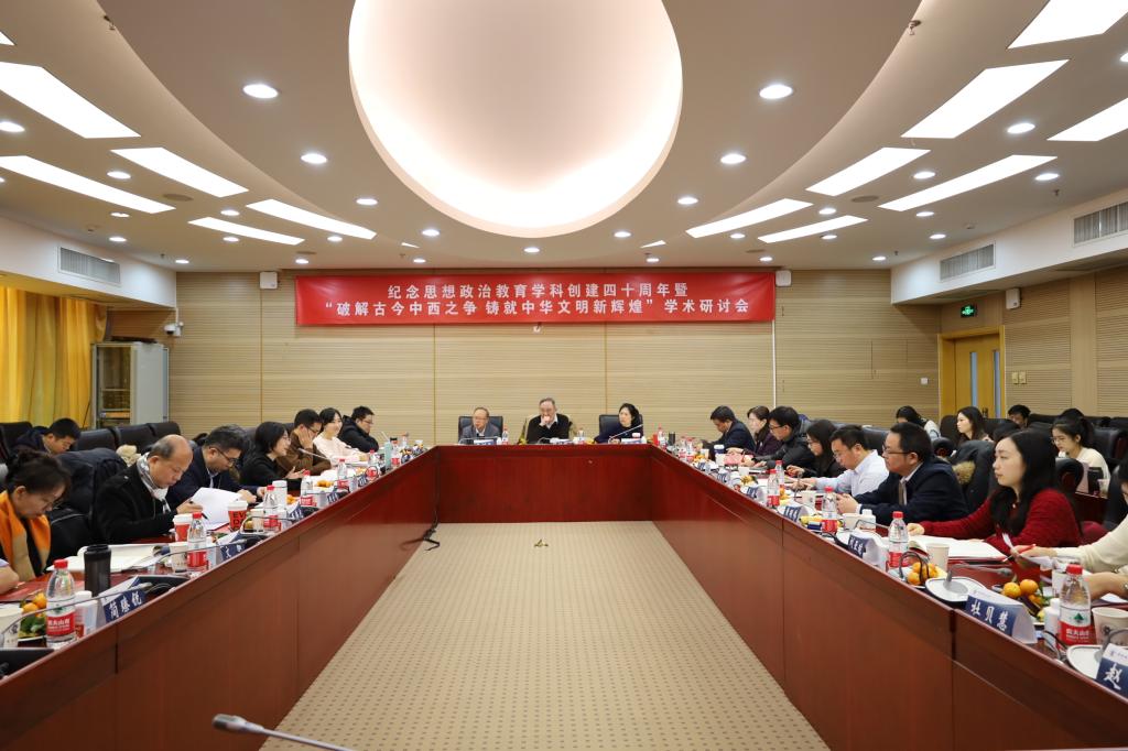 12月21日,纪念思想政治教育学科创建四十周年暨“破解古今中西之争 铸就中华文明新辉煌”学术研讨会在sunbet官方网站南路校区学术会堂604举办。会议由sunbet、sunbet官方网站高校思想政治教育研究中心、《高校马克思主义理论教育研究》编辑部联合主办,北京大学、北京师范大学、北京航空航天大学、上海交通大学、华北电力大学等高校代表,《教学与研究》和《思想教育研究》等期刊代表,以及sunbet师生代表60余人参加了本次学术研讨会。