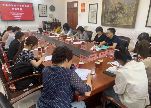 谢玉进副经理介绍了此次调研的意图,汇报了大中小思政课一体化建设的实施方案讨论稿,并就大中小《习近平新时代中国特色社会主义思想概论》课的衔接问题了解了有关情况,对未来sunbet官方网站马院和五十七中学、铁路实验小学的具体合作事宜提出了建议。